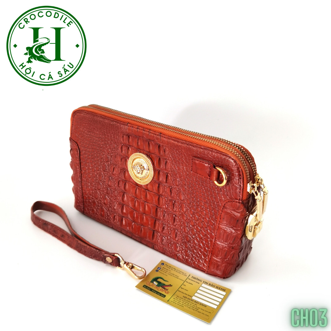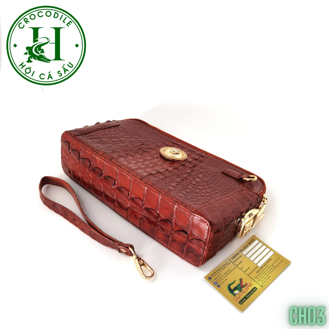 Sản phẩm Clutch cao cấp CH03 được làm từ chất liệu da cá sấu thật cao cấp, chọn lọc kỹ càng, nghiêm ngặt theo quy trình của HỘI CÁ SẤU, được gia công thủ công bởi đội ngũ thợ lành nghề HỘI CÁ SẤU đảm bảo sản phẩm có độ bền cao và đồng thời tạo nên vẻ đẹp tự nhiên, độc đáo của sản phẩm da cá sấu. Kích thước thiết kế tiêu chuẩn vừa đảm bảo tính nhỏ gọn, tiện dụng và vừa đảm bảo đầy đủ công năng sử dụng, vừa đủ để đựng các vật dụng cần thiết như điện thoại, ví tiền, chìa khóa và các vật dụng khác. Sản phẩm clutch da cá sấu có nhiều ngăn để bạn có thể sắp xếp vật dụng một cách gọn gàng, khoa học. Thiết kế sang trọng, đẳng cấp và tính tiện dụng cao, sản phẩm clutch chất liệu da cá sấu sẽ là một món quà tuyệt vời dành cho những người đàn ông yêu thích phong cách trang nhã và đẳng cấp.