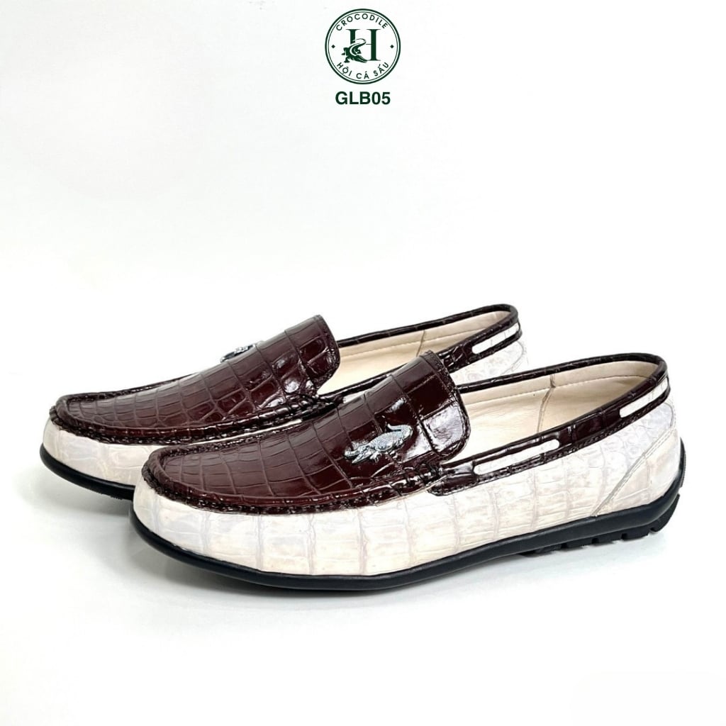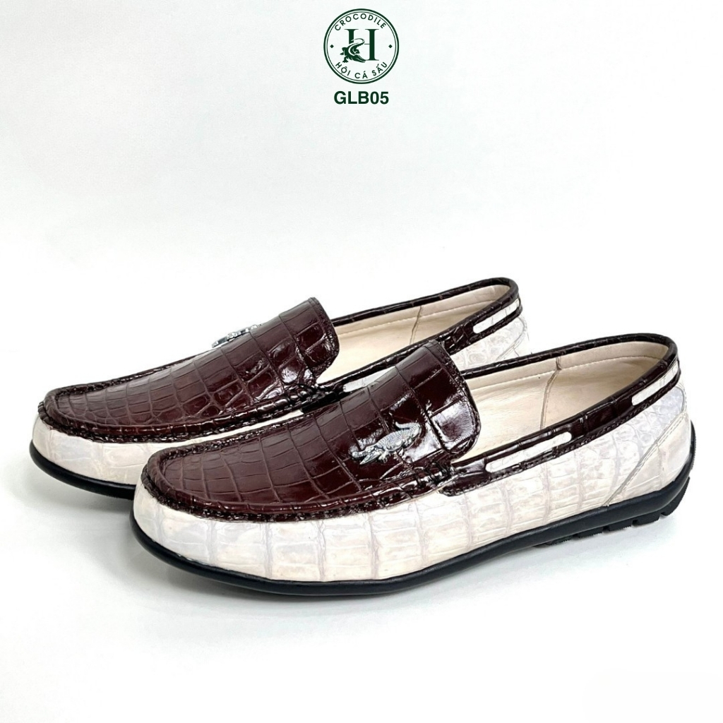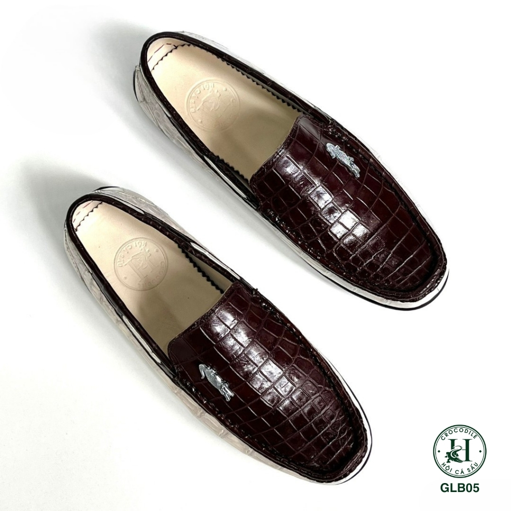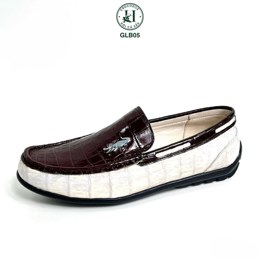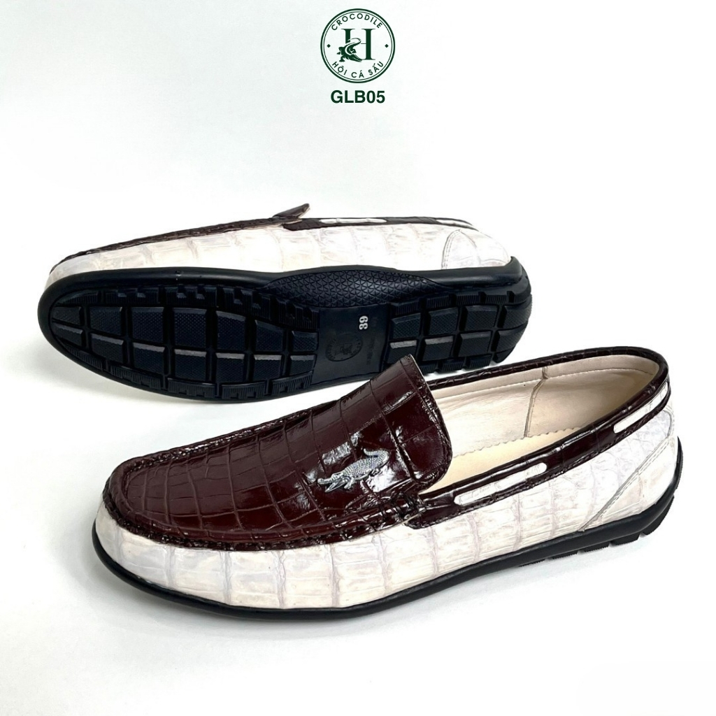 GLB05 là mẫu giày lười đế bệt được chế tác từ da bụng cá sấu thật loại 1, mang lại cảm giác mềm mại, thoải mái khi mang và dễ dàng tôn lên vẻ chỉn chu, sang trọng cho người sử dụng. Sản phẩm thuộc dòng có sẵn của Hội Cá Sấu, dành cho những quý ông yêu thích sự thanh lịch nhưng không kém phần nổi bật, đẳng cấp.
