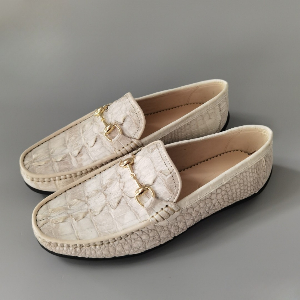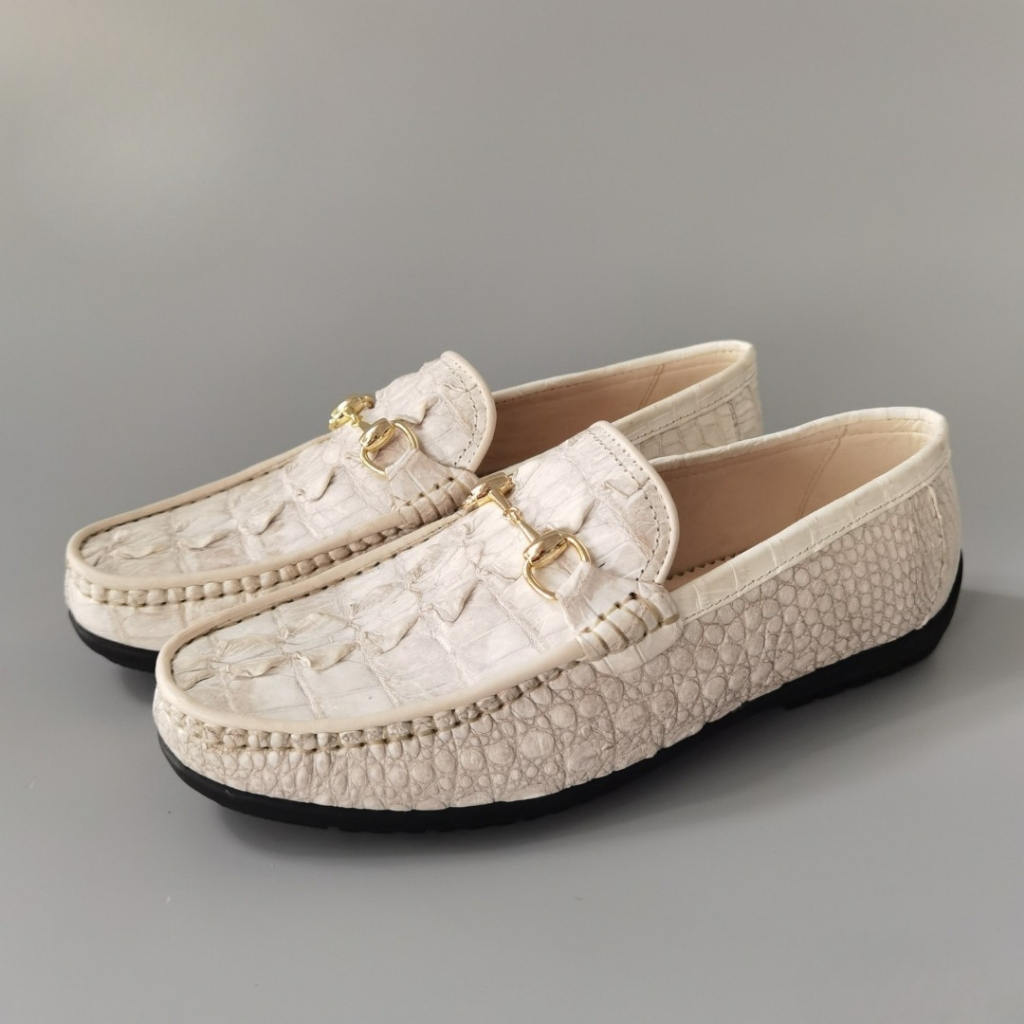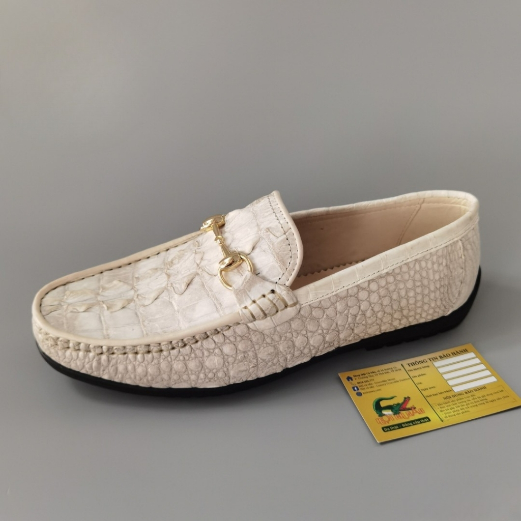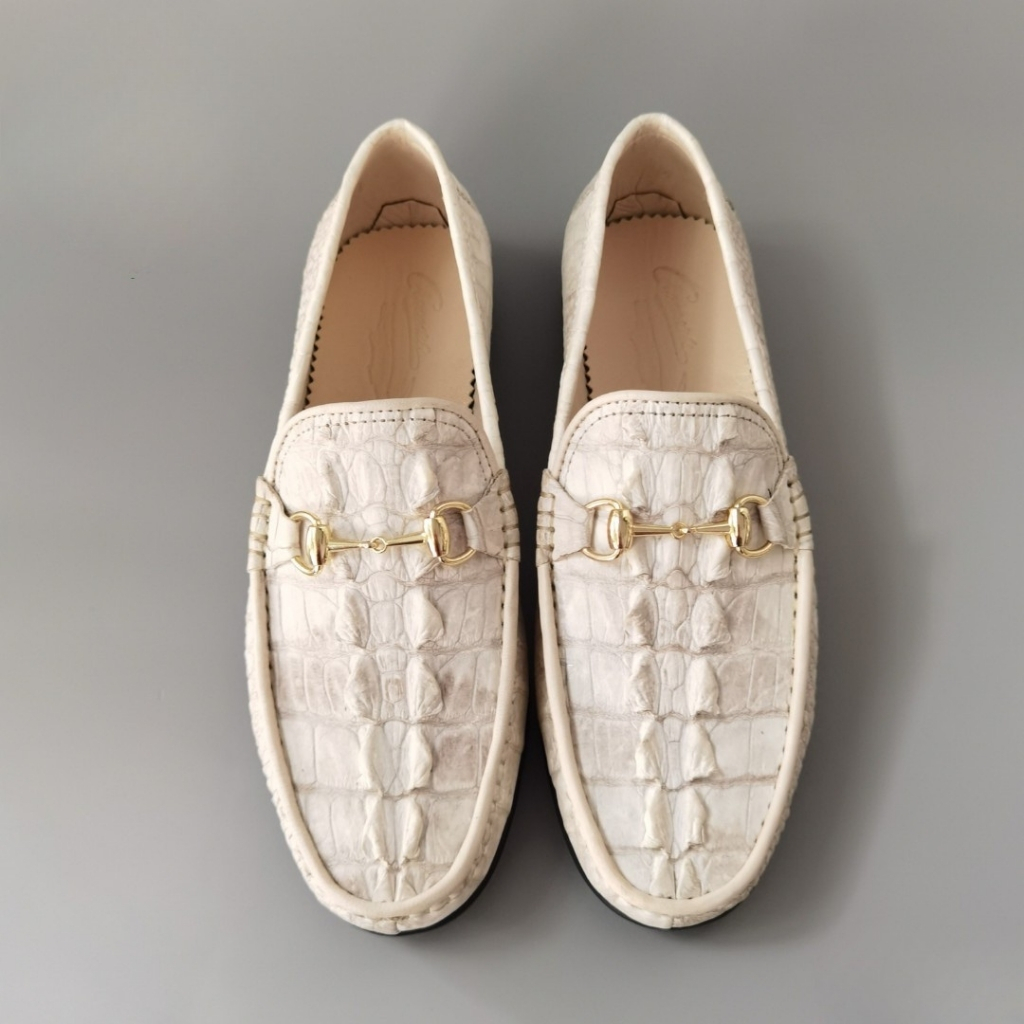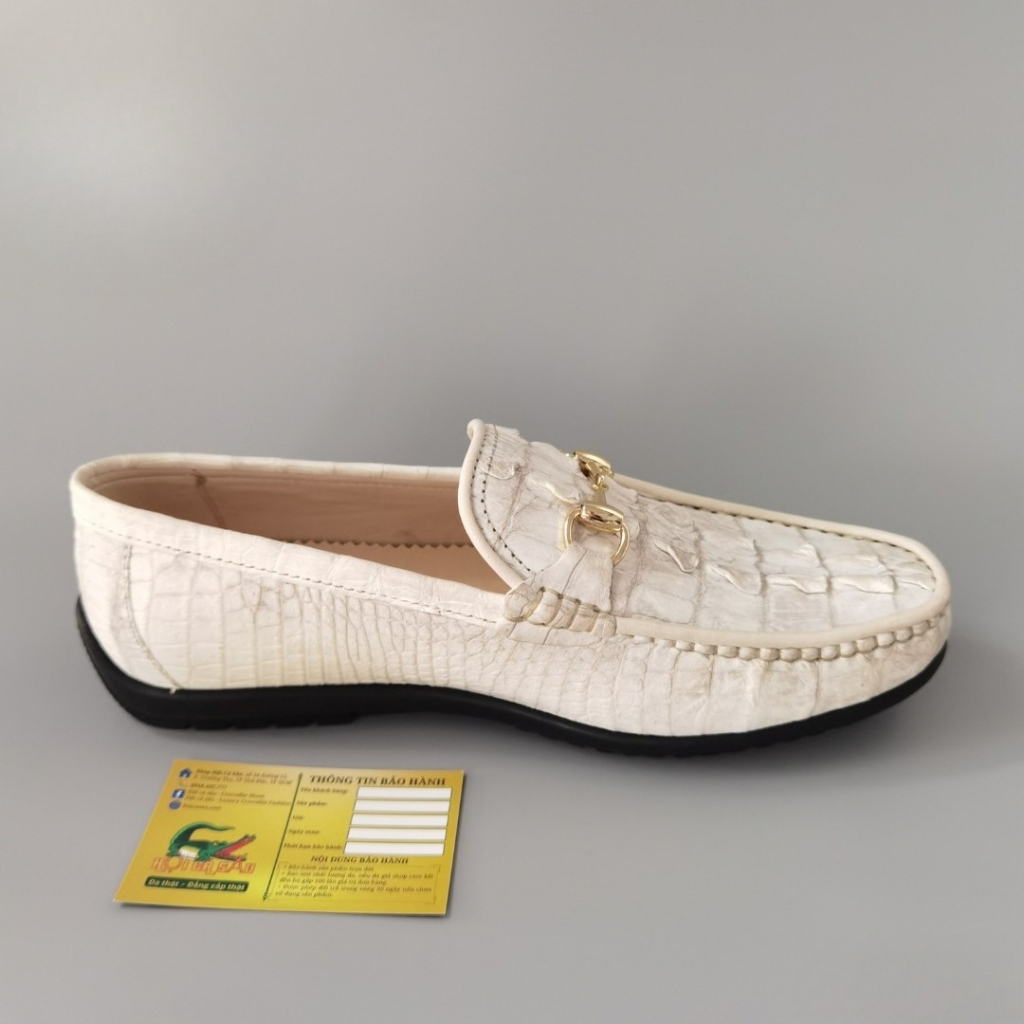GLD79BT là mẫu giày lười đế cao phiên bản da đuôi cá sấu bạch tạng, thuộc dòng sản phẩm đặt riêng tại Hội Cá Sấu, được chế tác từ da cá sấu thật 100% – lựa chọn kỹ phần đuôi với các vân gồ nổi mạnh mẽ, khác biệt, kết hợp tone màu trắng bạch tạng quý hiếm.