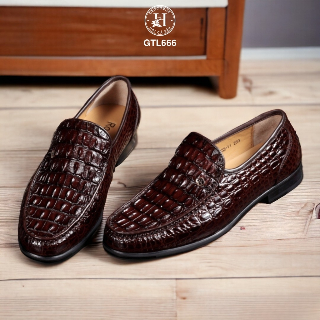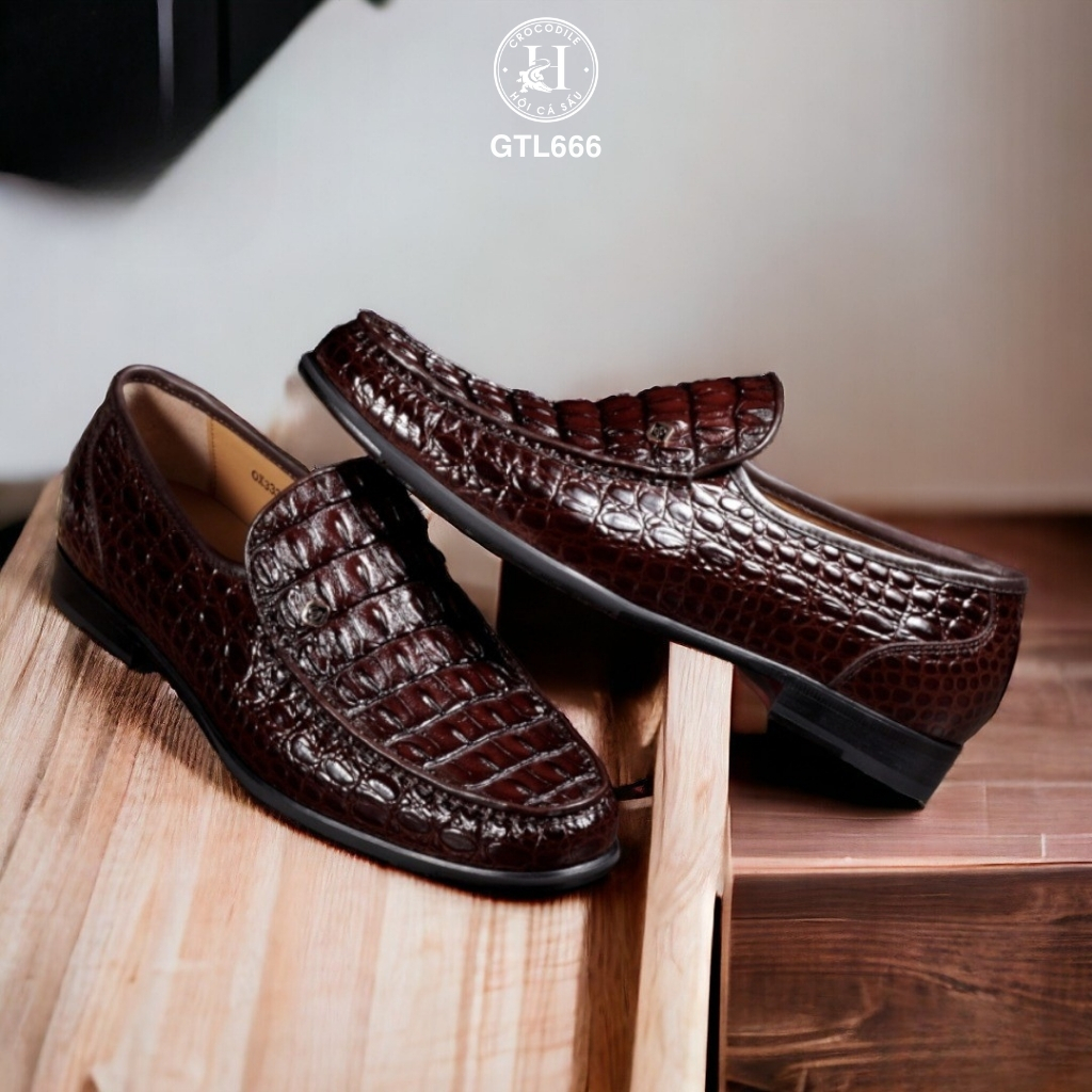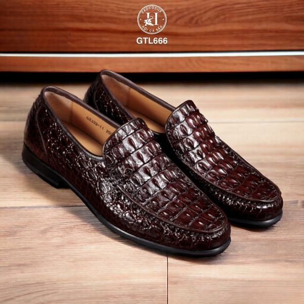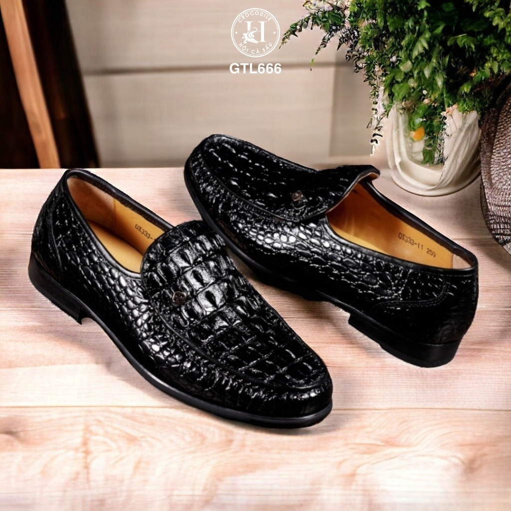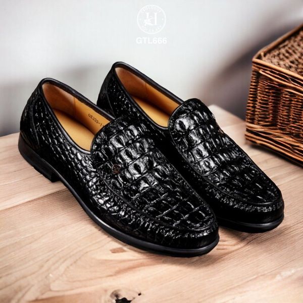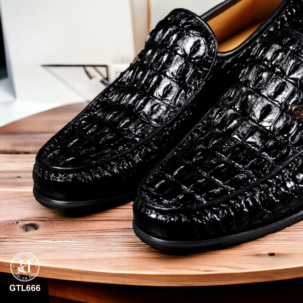 GTL666 là mẫu loafer cao cấp được chế tác từ da lưng cá sấu thật 100%, với đường vân gồ mạnh mẽ, cá tính – đại diện cho phong thái bản lĩnh và gu thẩm mỹ khác biệt của người mang.