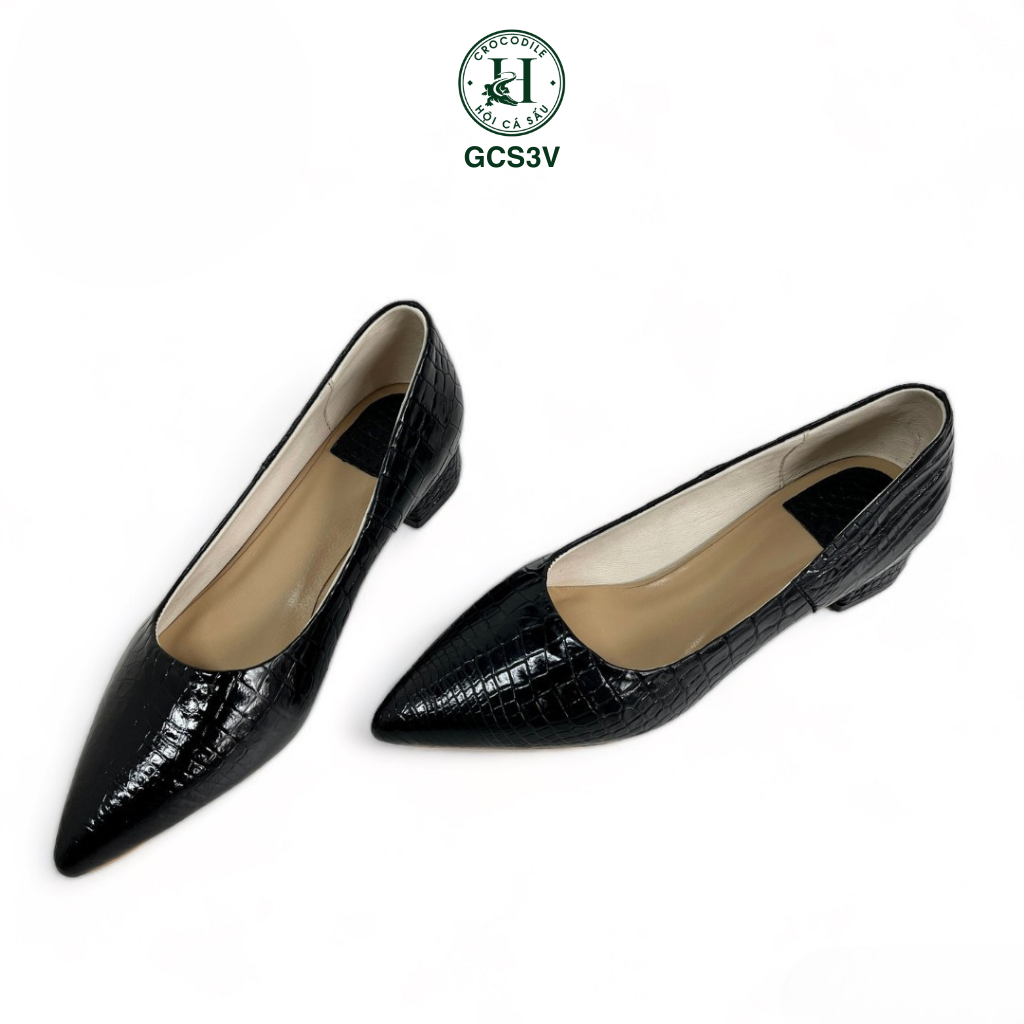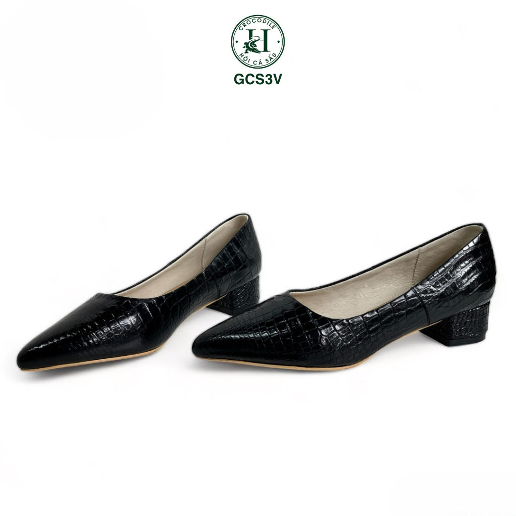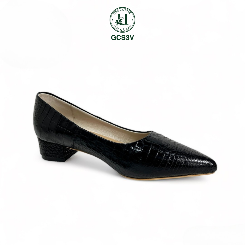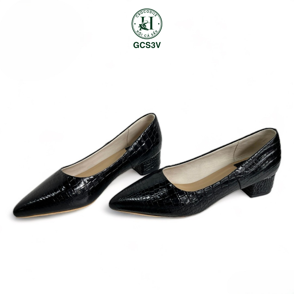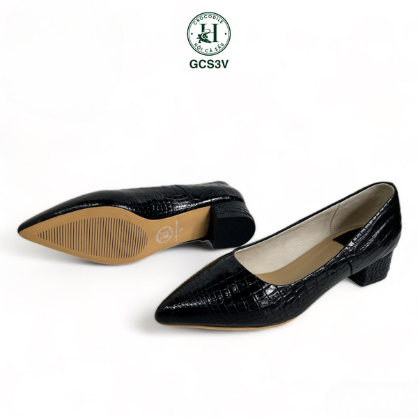 Giày nữ cao gót da cá sấu - GCS3V là dòng giày cao cấp dành cho nữ của HỘI CÁ SẤU, là một trong những sản phẩm sang trọng nhất trong thế giới giày dép. Chúng được làm từ da cá sấu, một loại da hiếm có, có độ bền cao và một vẻ đẹp độc đáo.