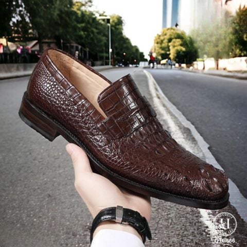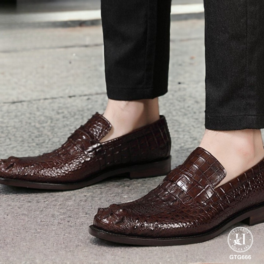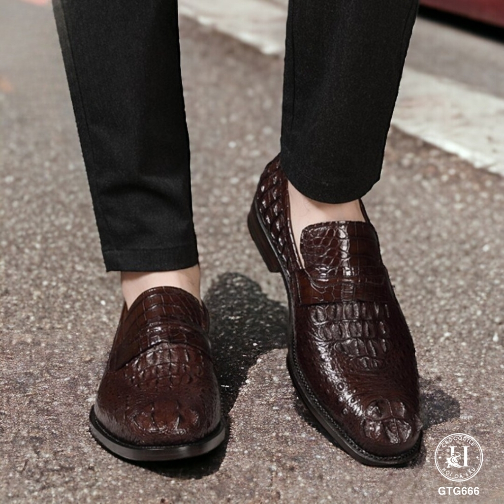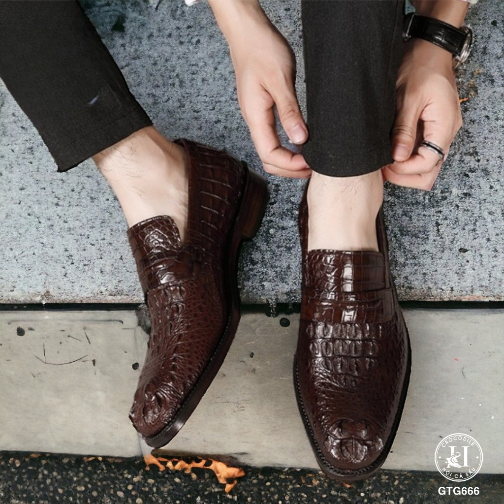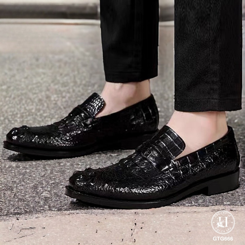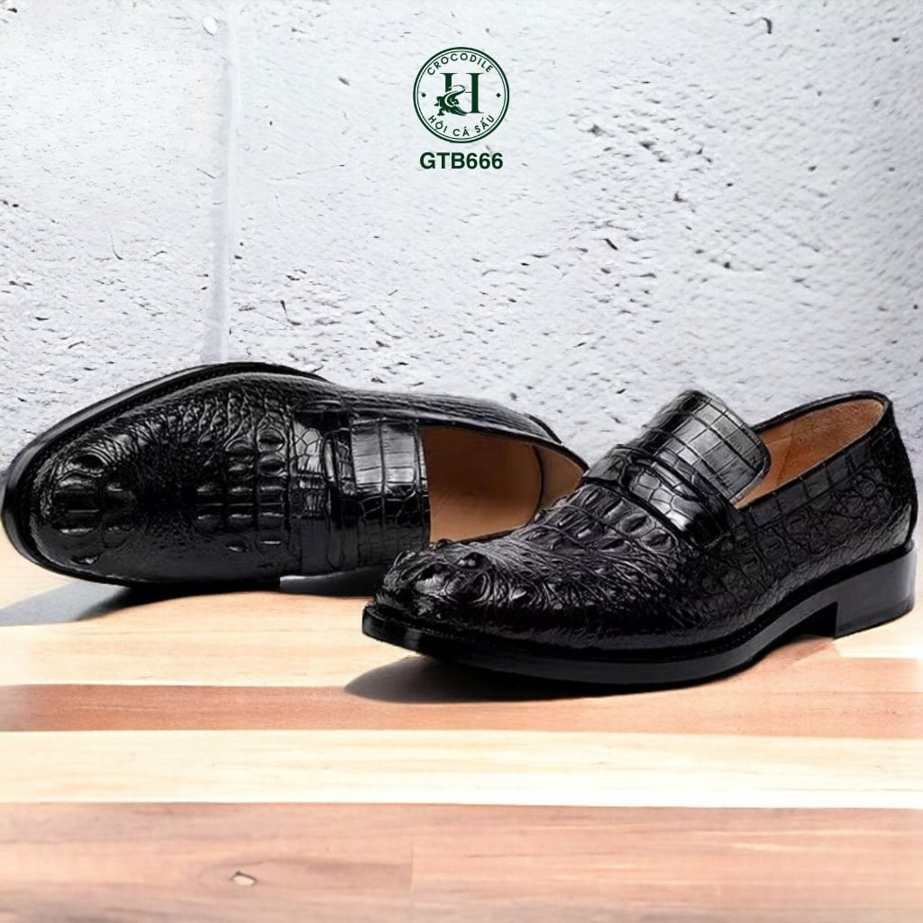 GTG666 là mẫu giày Tây không dây cao cấp được chế tác từ da gù cá sấu thật nguyên tấm, mang đến sự mạnh mẽ, đĩnh đạc nhưng vẫn vô cùng thanh lịch. Sản phẩm dành riêng cho những quý ông yêu thích sự chỉn chu và đẳng cấp trong mọi hoàn cảnh – từ công sở, sự kiện quan trọng đến những buổi gặp gỡ đối tác.