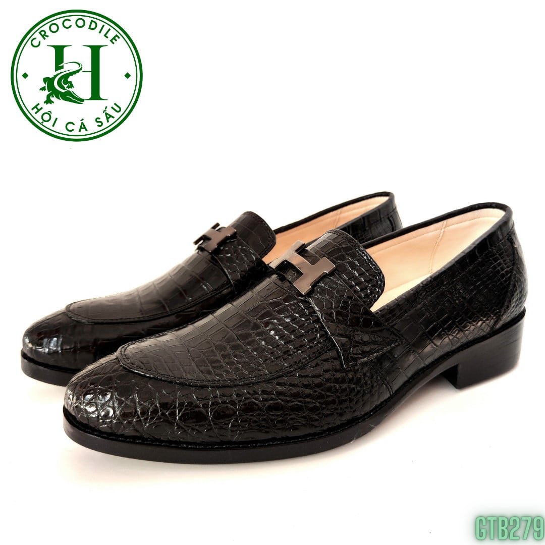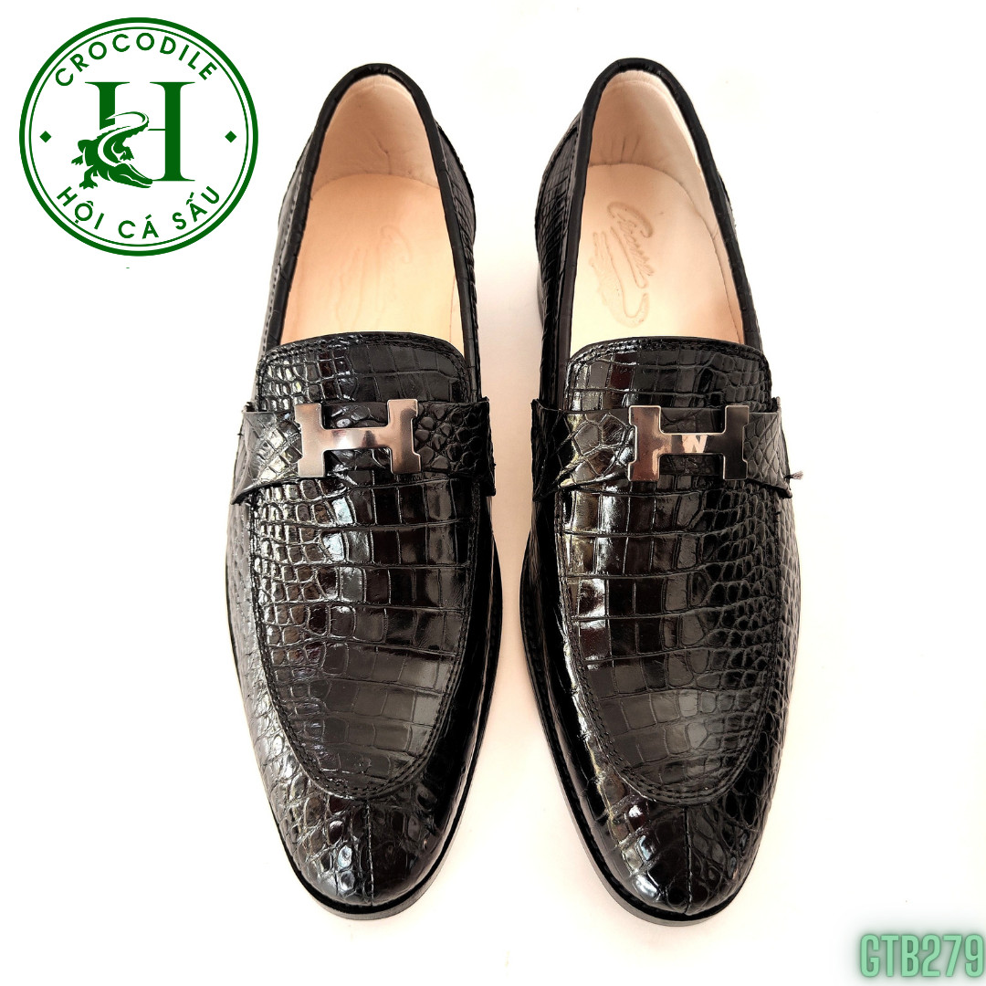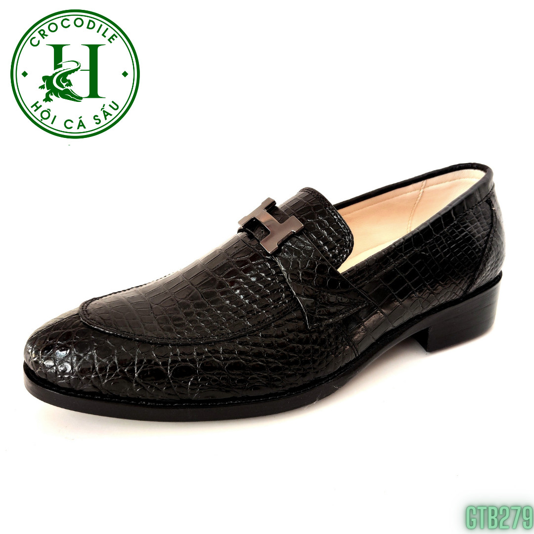 Giày Tây không dây da bụng cá sấu – GTB279 là dòng sản phẩm cao cấp của HỘI CÁ SẤU, được làm từ da cá sấu nguyên tấm, da thật loại 1 đạt chuẩn 100%, được gia công từ đôi bàn tay khéo léo của đội ngũ thợ lành nghề HỘI CÁ SẤU, đường nét gia công tinh tế, sắc xảo tạo nên sự đẳng cấp, sang trọng cho đôi giày. Giày được gia công thủ công tỉ mỉ từng chi tiết, kiểu dáng ôm chân, đẹp mắt, cân đối, có thể làm hài lòng tất cả những vị khách khó tính nhất. Sản phẩm đem đến sự thoải mái tuyệt đối trong quá trình sử dụng, đa dạng về công năng, có thể sử dụng để đi làm, đi chơi, dự tiệc, gặp gỡ bạn bè…