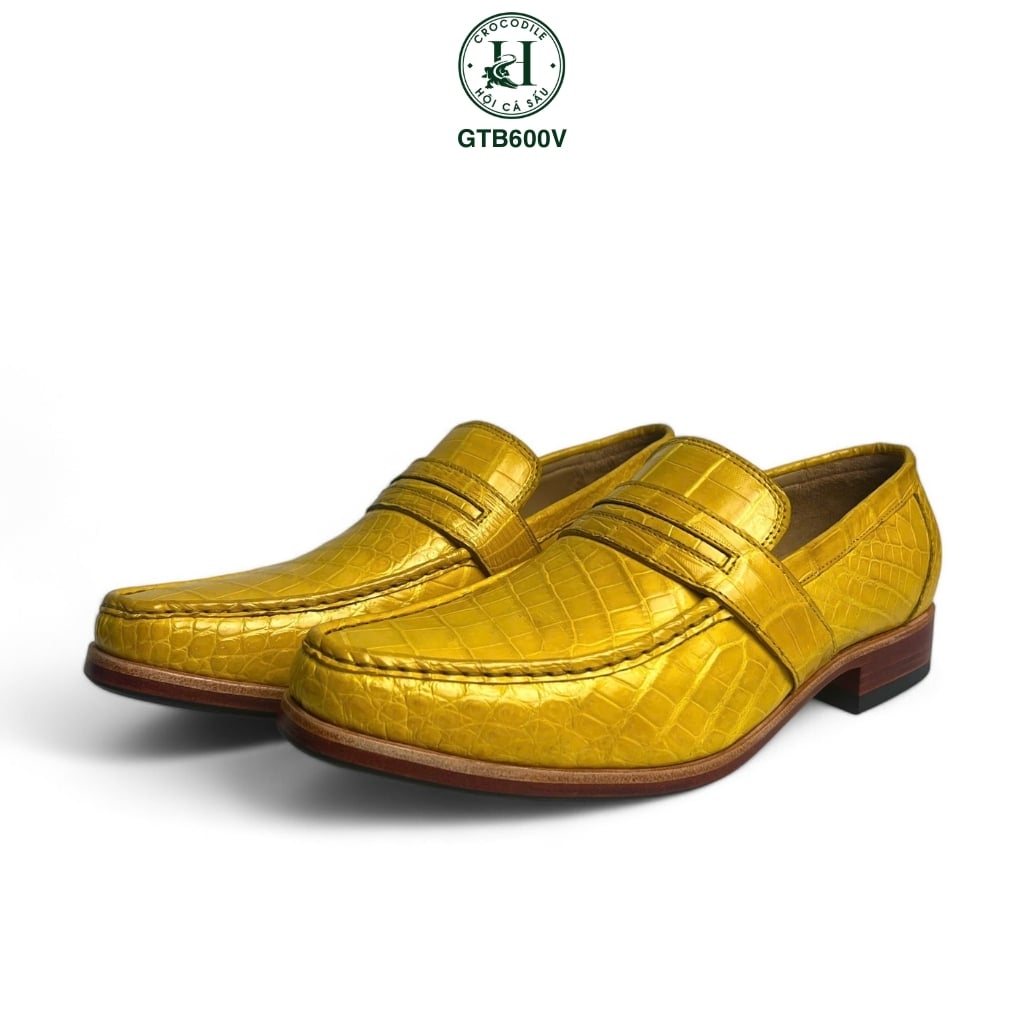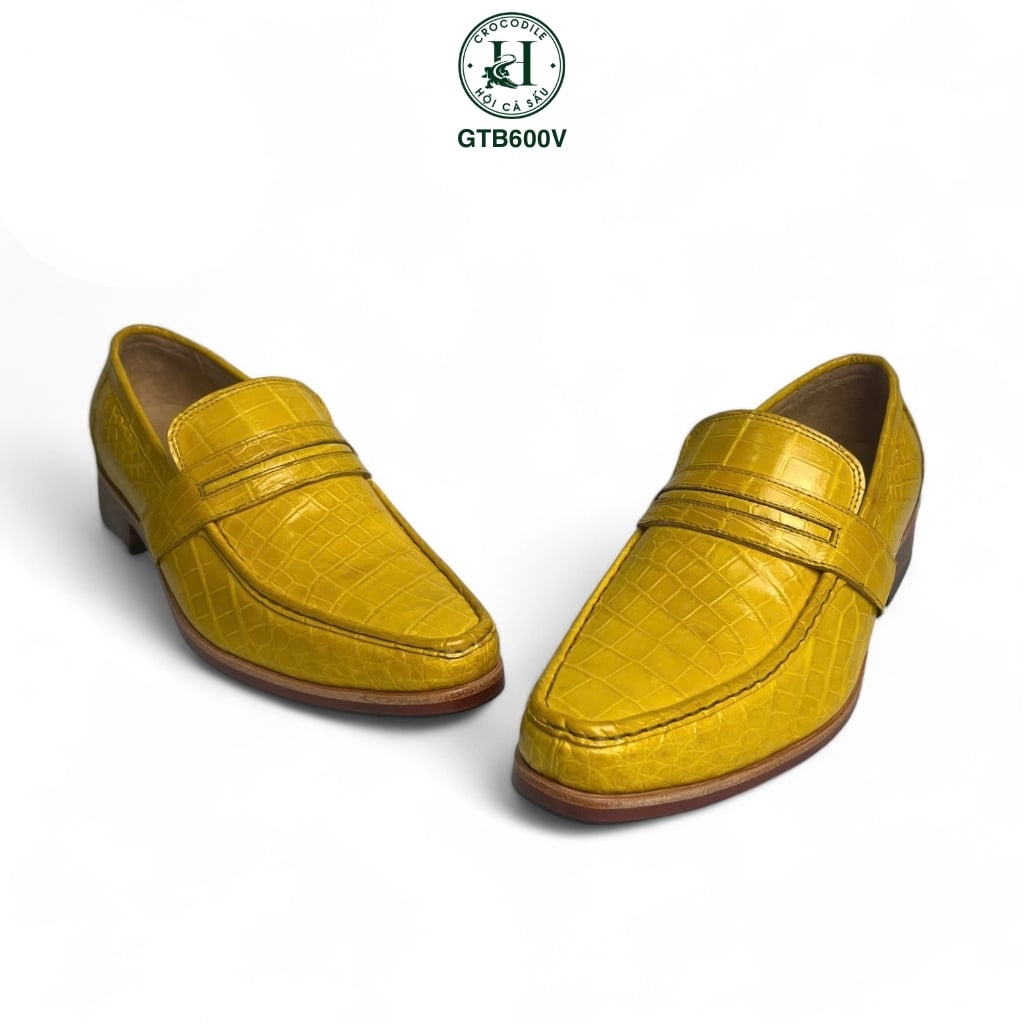 GTB600V là mẫu giày Tây không dây cao cấp, được chế tác riêng từ da bụng cá sấu thật với tone màu vàng nghệ ấn tượng, dành cho những quý ông bản lĩnh, thích thể hiện phong cách khác biệt và dẫn đầu xu hướng.