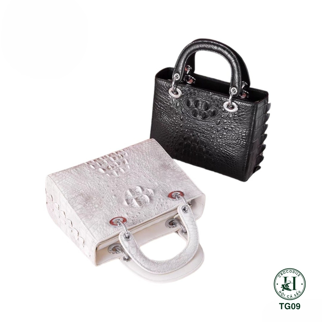 TG09 là phiên bản túi Dior mini cảm hứng, được chế tác từ da gù cá sấu thật 100% – vùng da lưng cá sấu với họa tiết gồ mạnh mẽ, cá tính và đầy quyền lực. Mẫu túi mang phom vuông sang trọng, kích thước nhỏ gọn nhưng cực kỳ thời trang và tiện dụng, phù hợp cho các buổi gặp gỡ, tiệc nhẹ hay sử dụng hằng ngày.