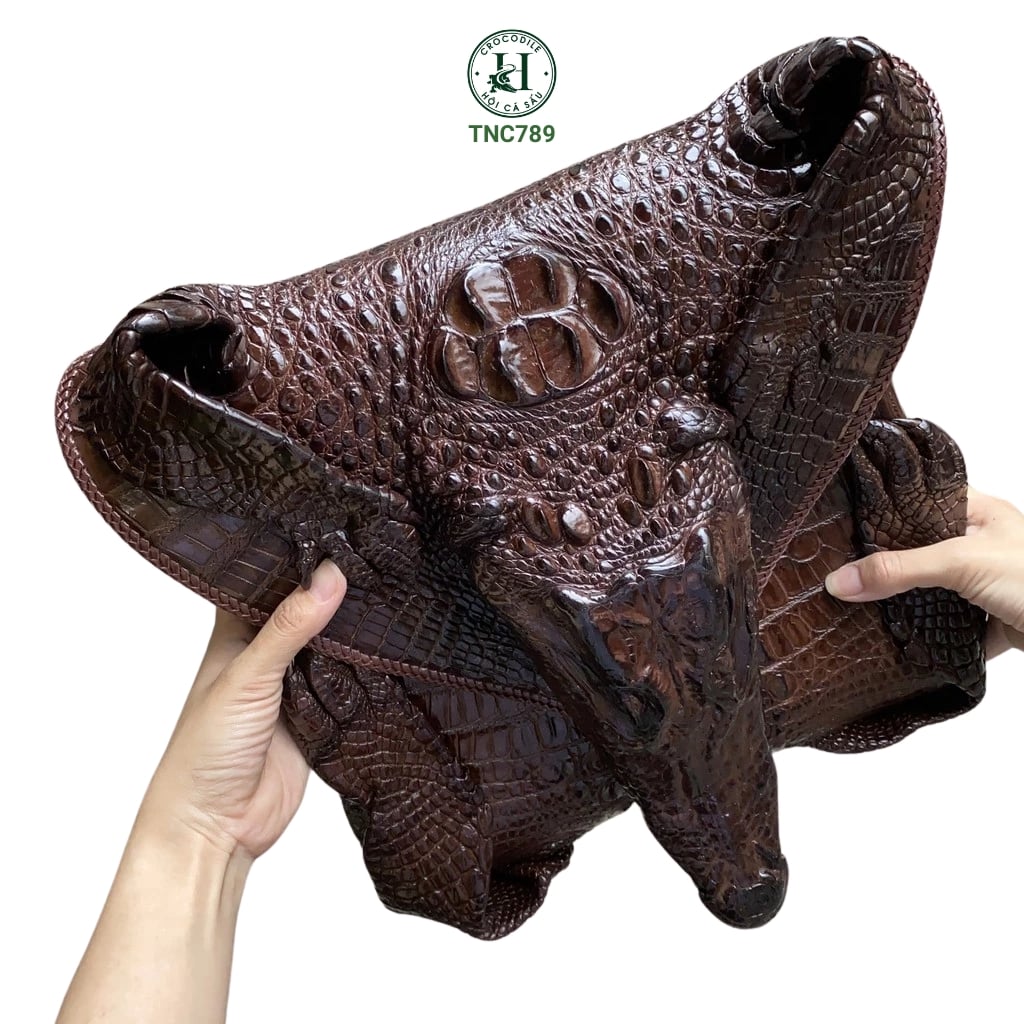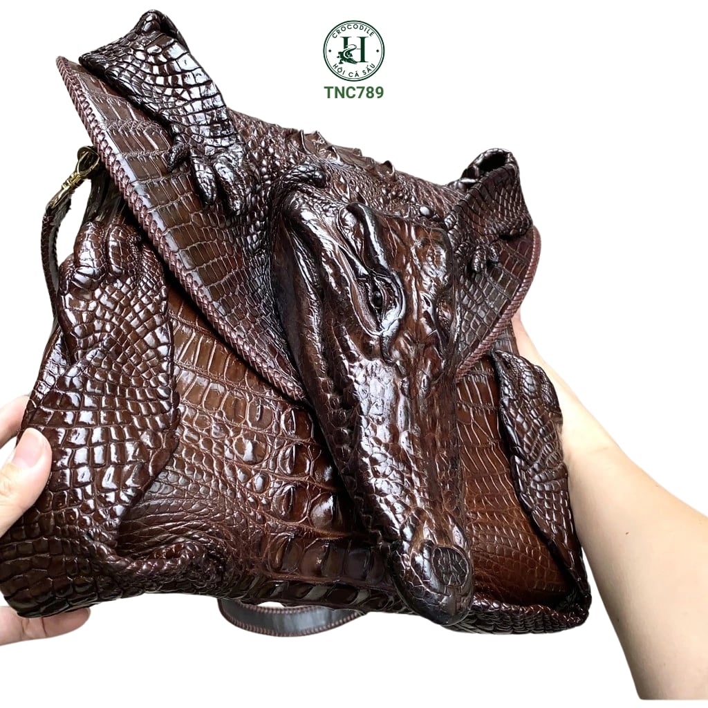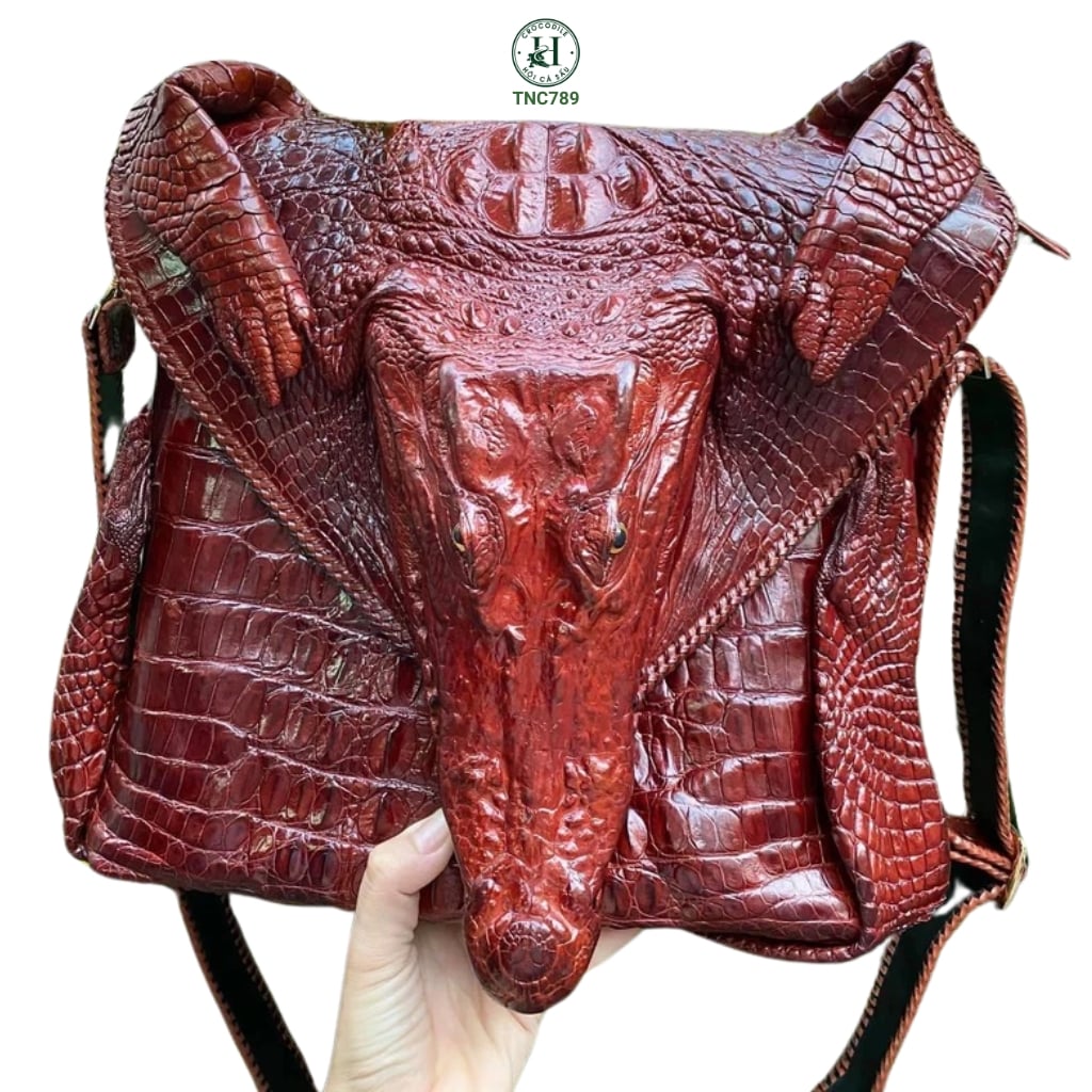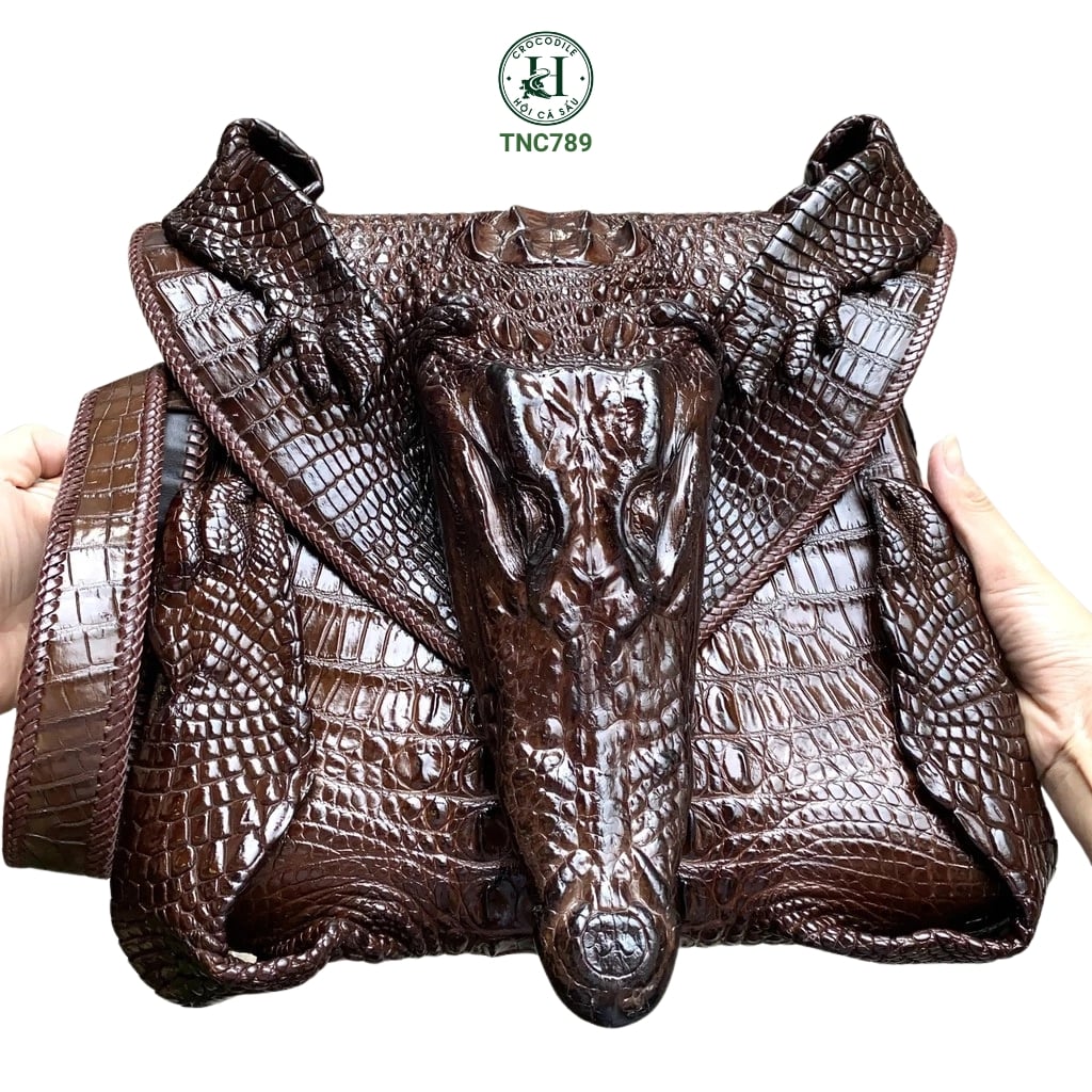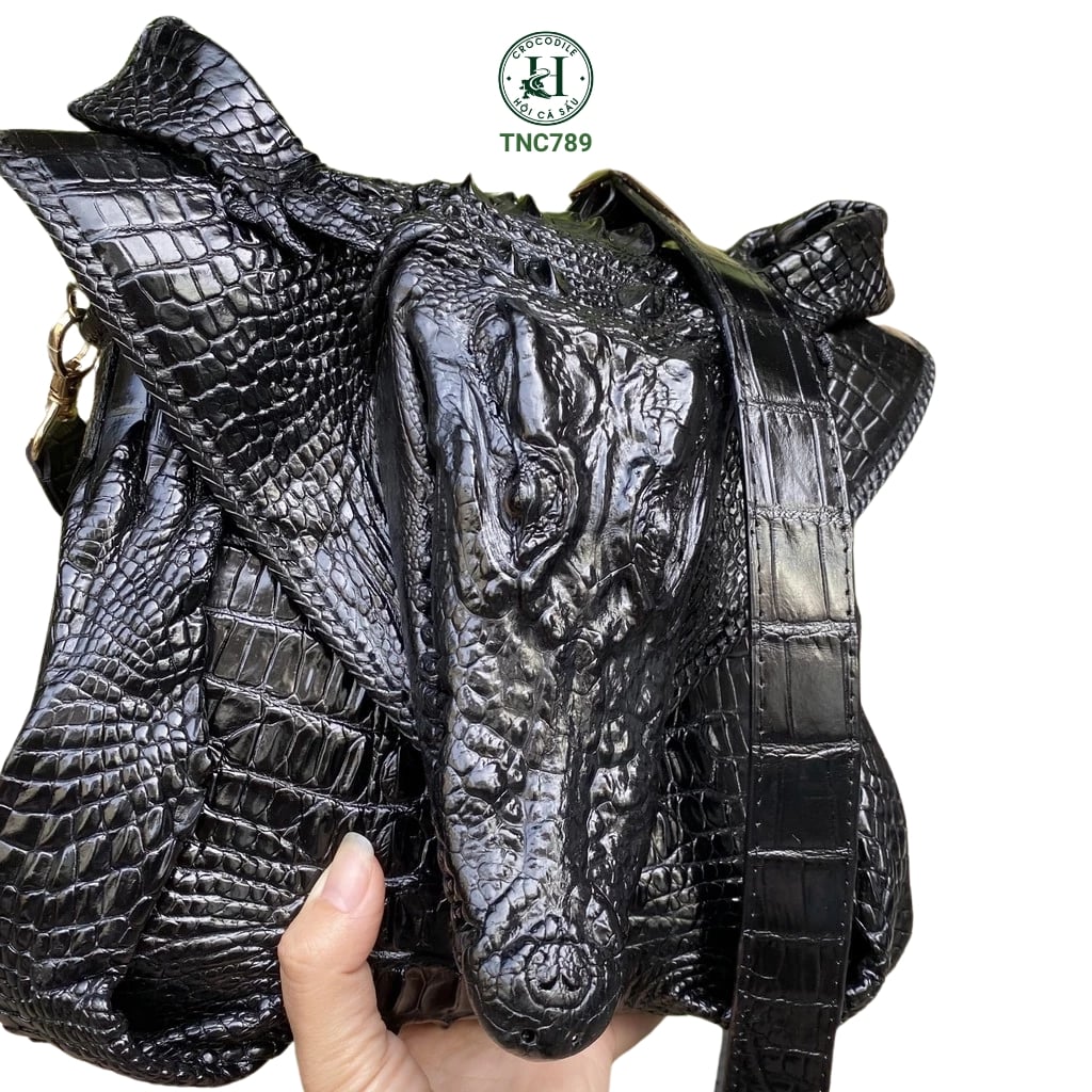 TNC789 là mẫu túi xách cao cấp đặc biệt, được chế tác từ da đầu cá sấu nguyên con – dòng da giá trị và khó gia công bậc nhất. Mỗi sản phẩm là một tác phẩm nghệ thuật độc bản, nổi bật với hình dáng nguyên vẹn phần đầu cá sấu tự nhiên, giữ lại từng chi tiết vân da, gồ ghề, gai nhọn, tạo nên dấu ấn cá tính và quyền lực cho người sở hữu.