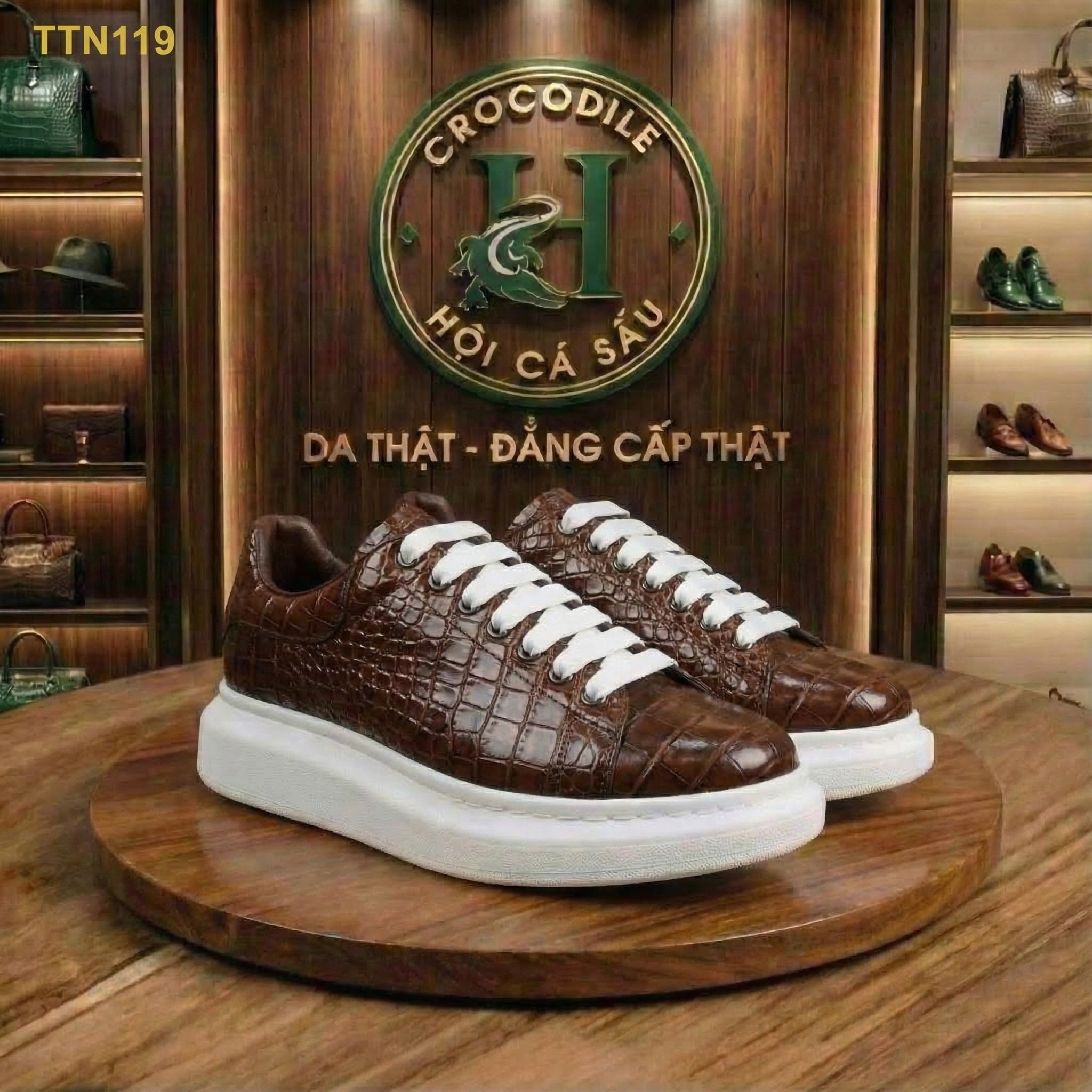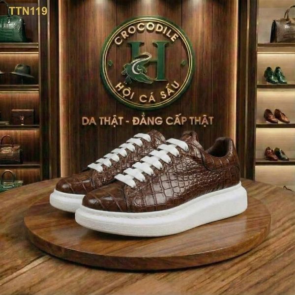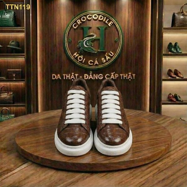 TTN119 – GIÀY THỂ THAO DA CÁ SẤU MÀU NÂU LUXURY – CHẤT ĐẲNG CẤP, FORM PHONG CÁCH