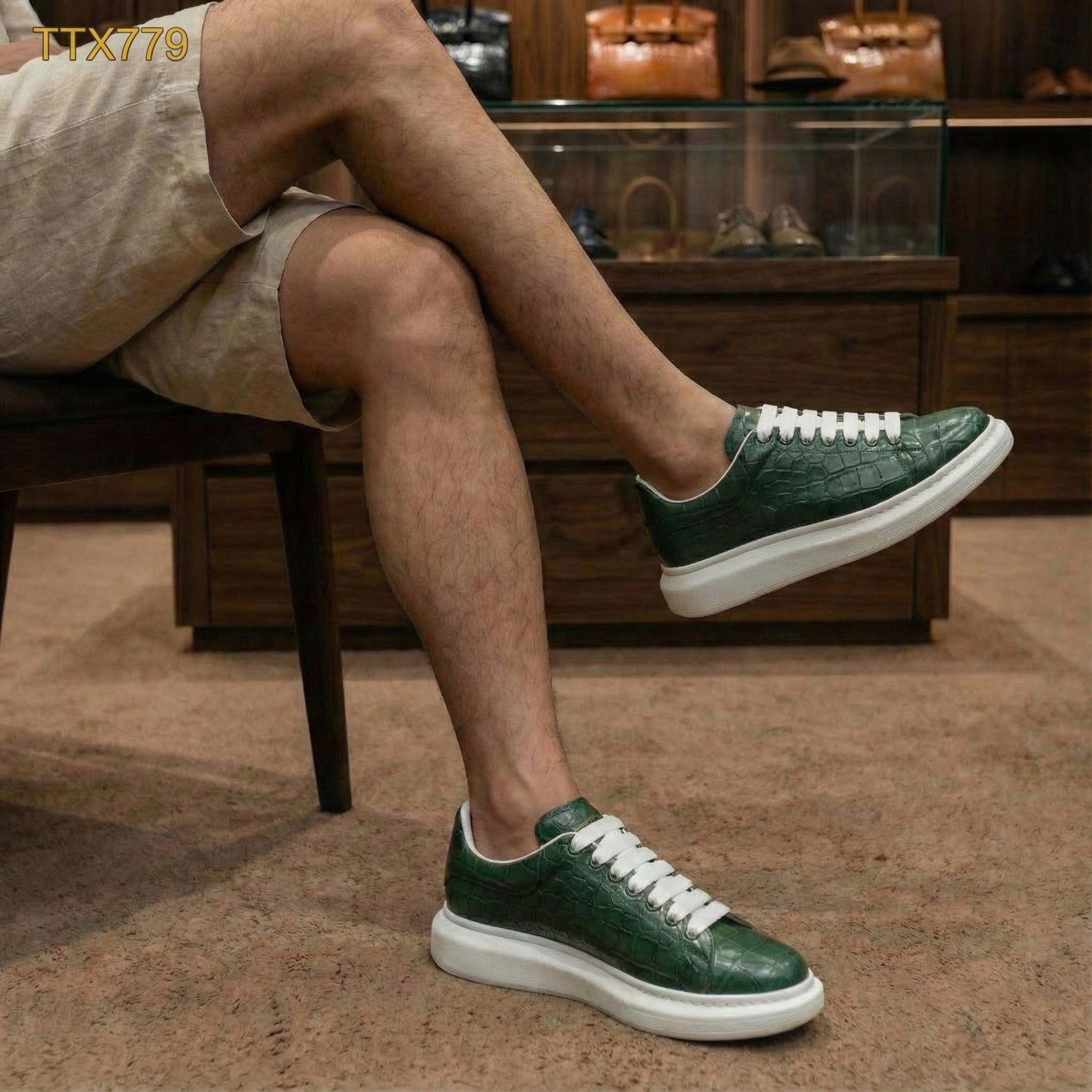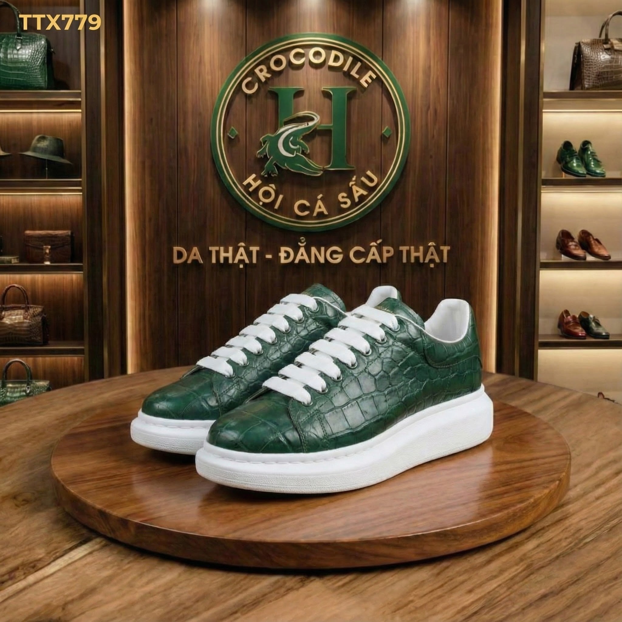 Màu xanh không chỉ là màu của thiên nhiên mà còn là tuyên ngôn phong cách dành cho những người đi đầu xu hướng. Kết hợp với chất liệu da bụng cá sấu thật, mẫu TTX779 mang đến một vẻ ngoài độc bản – đậm chất cá nhân, không đụng hàng.