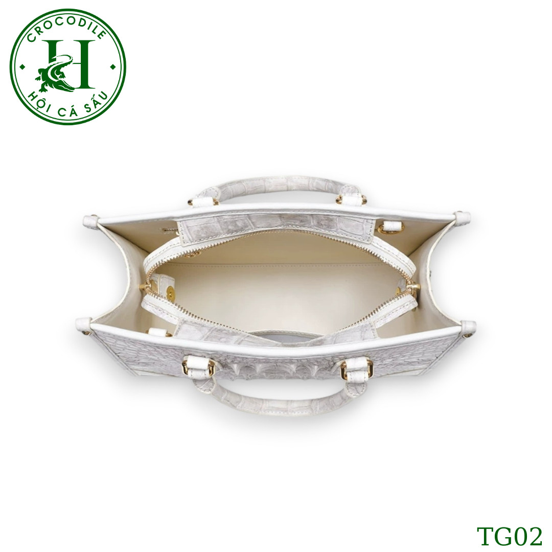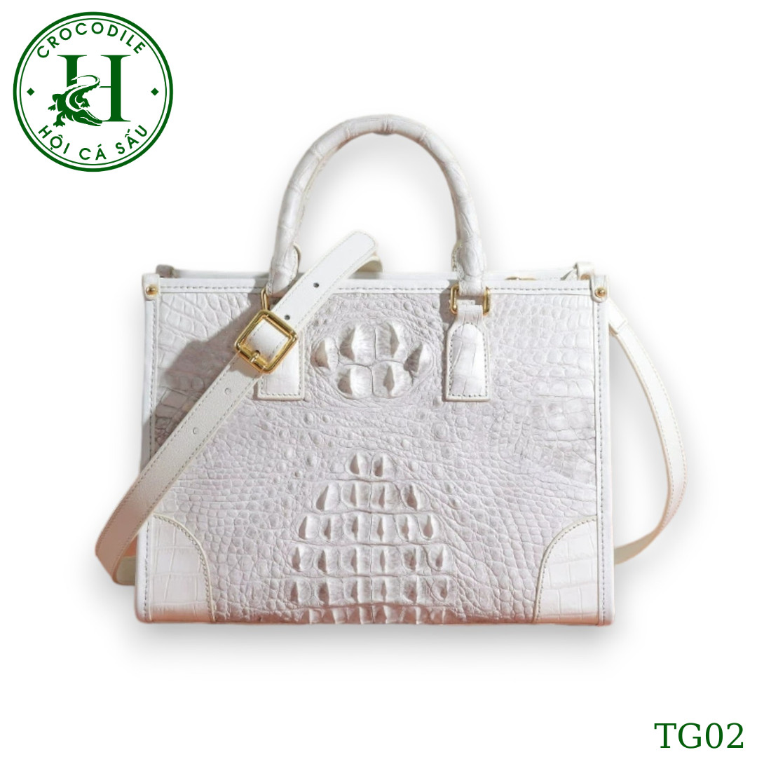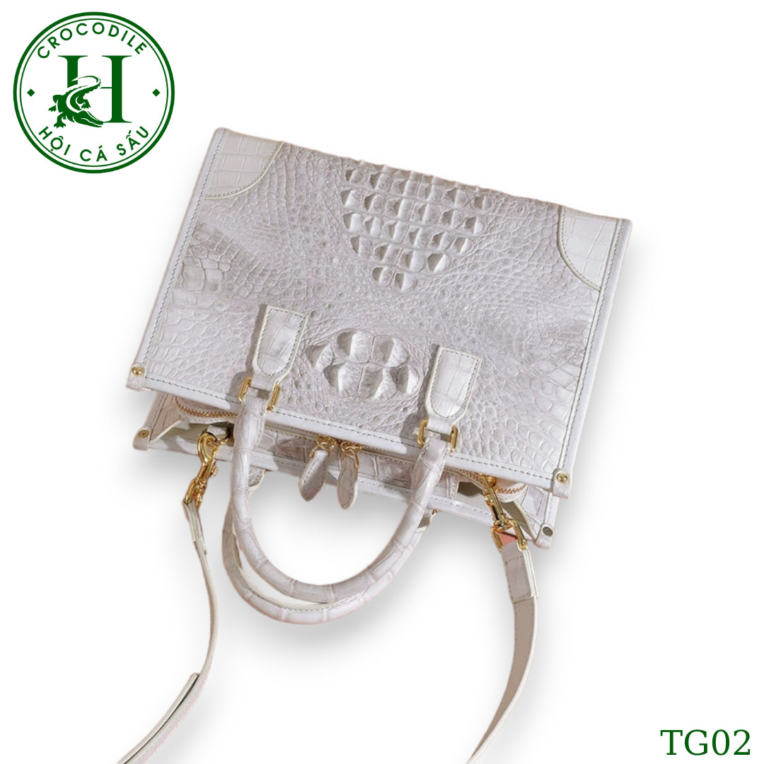 Sản phẩm túi xách nữ da cá sấu màu bach tạng cao cấp TG02T đến từ thương hiệu HỘI CÁ SẤU, được ví như một tác phẩm nghệ thuật thượng đẳng, gia công làm thủ công từ chất liệu da cá sấu thật cao cấp qua đôi bàn tay khéo léo của đội ngũ thợ lành nghề HỘI CÁ SẤU. Túi xách có thiết kế đơn giản nhưng tinh tế, góp phần tạo nên vẻ đẹp thanh lịch và sang trọng cho người dùng. Bên cạnh đó, túi xách nữ da cá sấu còn rất tiện dụng với nhiều ngăn để bạn có thể sắp xếp đồ dùng một cách khoa học và gọn gàng. Với độ bền và sự bảo vệ tuyệt đối cho các vật dụng bên trong, sản phẩm này không chỉ là một phụ kiện thời trang mà còn là một kho báu đáng giá trong bộ sưu tập của bất kỳ ai yêu thích sự đẳng cấp và sang trọng.
