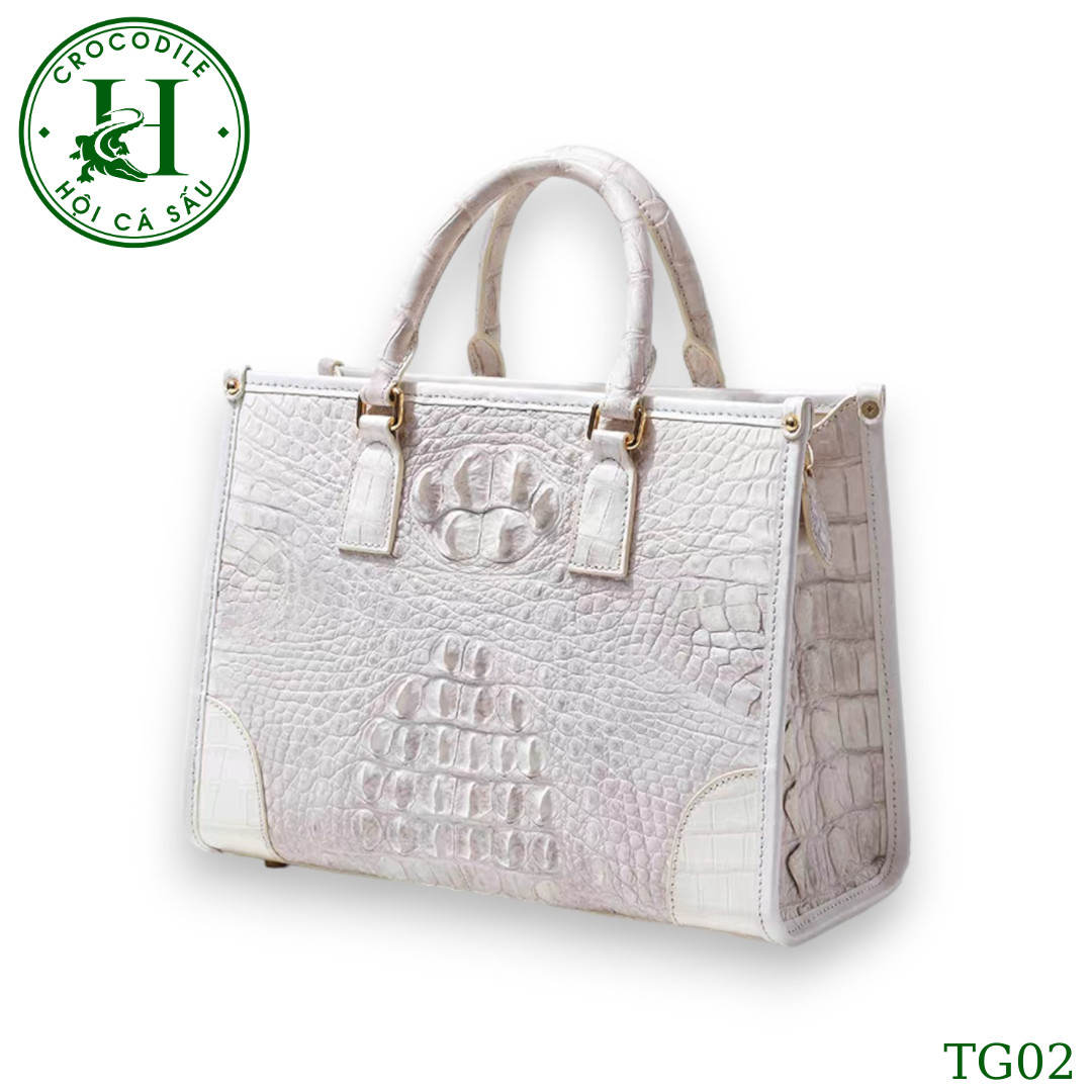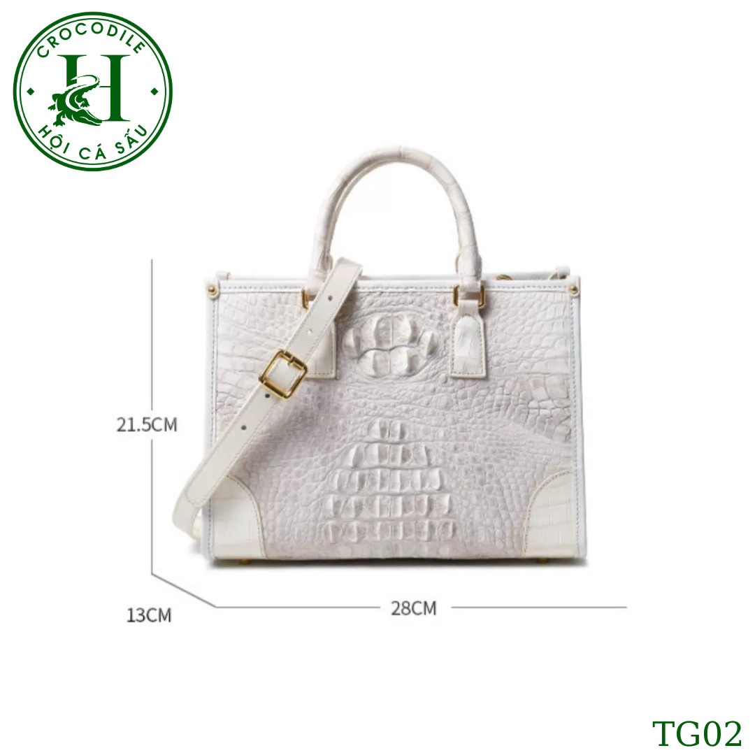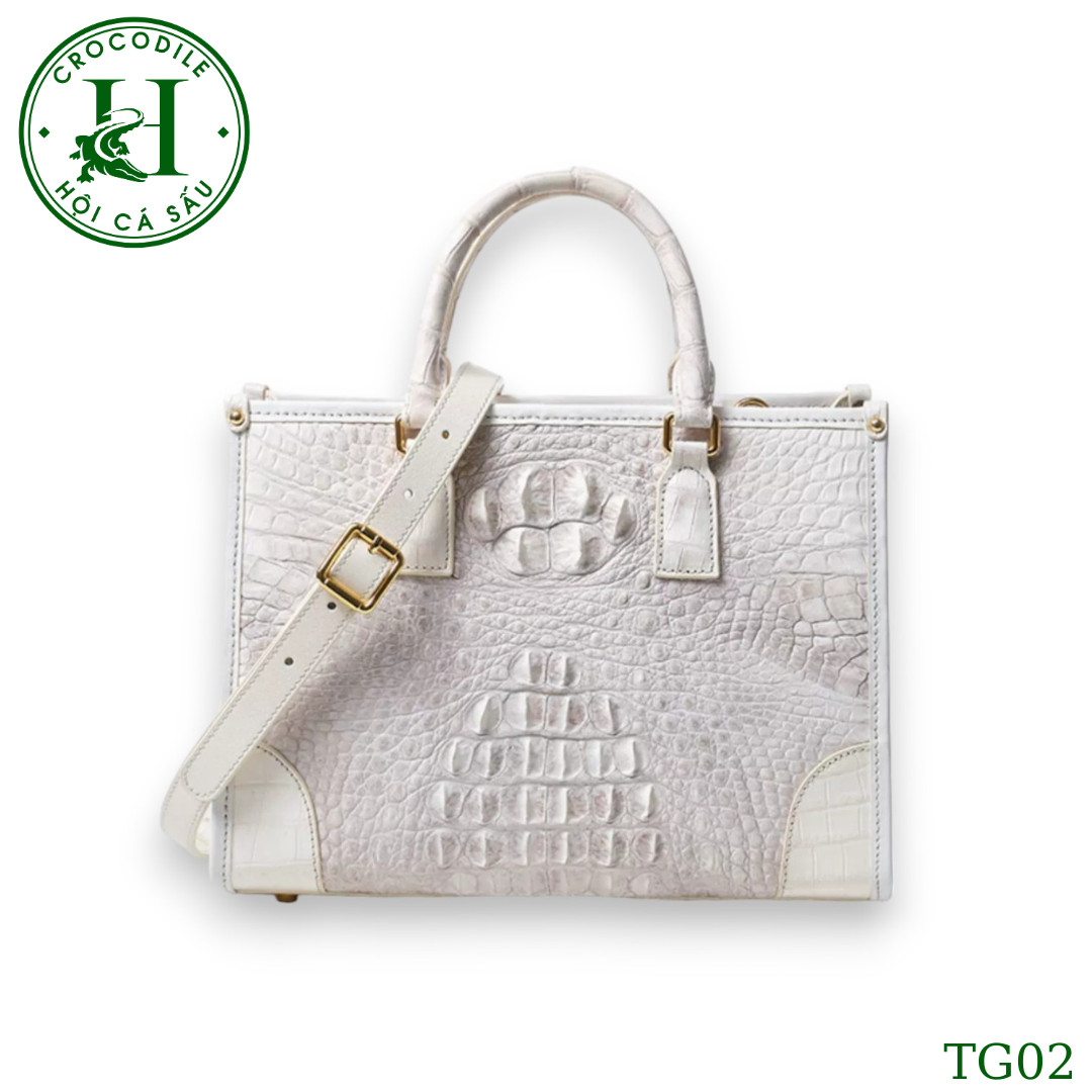 Sản phẩm túi xách nữ da cá sấu màu bach tạng cao cấp TG02T đến từ thương hiệu HỘI CÁ SẤU, được ví như một tác phẩm nghệ thuật thượng đẳng, gia công làm thủ công từ chất liệu da cá sấu thật cao cấp qua đôi bàn tay khéo léo của đội ngũ thợ lành nghề HỘI CÁ SẤU. Túi xách có thiết kế đơn giản nhưng tinh tế, góp phần tạo nên vẻ đẹp thanh lịch và sang trọng cho người dùng. Bên cạnh đó, túi xách nữ da cá sấu còn rất tiện dụng với nhiều ngăn để bạn có thể sắp xếp đồ dùng một cách khoa học và gọn gàng. Với độ bền và sự bảo vệ tuyệt đối cho các vật dụng bên trong, sản phẩm này không chỉ là một phụ kiện thời trang mà còn là một kho báu đáng giá trong bộ sưu tập của bất kỳ ai yêu thích sự đẳng cấp và sang trọng.